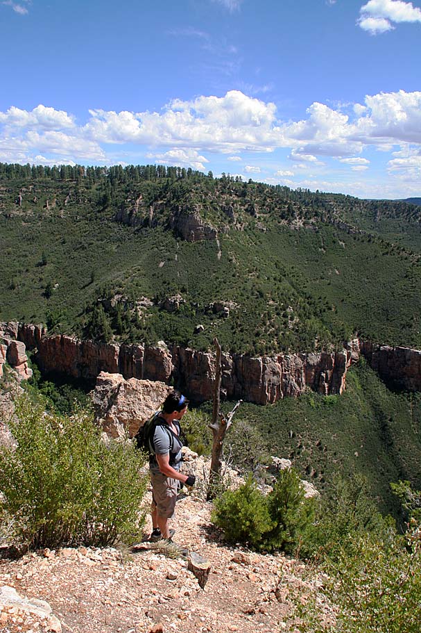 out into the Grand Canyon and then follows mild drainage contours around to the