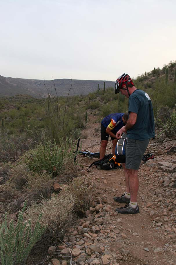 So the general plan for Day One of our Winter 2007 Arizona trip was to beat feet out of SoCal and make our way out to Sedona with a pit-stop ride near or in Phoenix with our friend Gary. Armed with Gary's address and my Google Maps enabled phone we proceeded to be "Googled" into the wrong part of town that added a little bit of time and a whole lot of cultural diversity to the drive. Gary is a coffee connoisseur in a big way and when we turned onto his street we could smell freshly roasted coffee beans wafting through his neighborhood. After some gripping and grinning, Gary showed off his barista skills and we were soon discussing trail options over the best freaking cup of coffee I have ever had. We were soon jazzed up on java and headed north out of town to ride a portion of the Black Canyon Trail system that Gary and many others have recently had a hand in building. The Black Canyon Trail system will eventually encompass over 62 miles of single track that will add even more truly epic riding to Arizona.