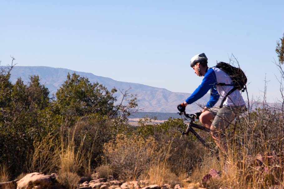 Everybody got off to a slow and leisurely start today that included breakfast at the local bakery which was mighty tasty.  Now while the SoCal contingent only had one day of riding on our legs, the Colorado folks were going on something like eight straight days of substantial riding and most were looking for something that was not quite epic in nature.  Joe, a Flagstaff local (among many other things), came down and showed us around on some nice loops that included some technical chunky stuff that is not yet in the books out near the Dry Creek trails.  The trails we were on had some picturesque exposure while being narrow with tight turns that were often times off camber.  The chunk factor was high enough that if you did dab, getting back into a rhythm again was tough.  I was asked not name these trail so please don't ask.  Hook up with some locals and there is a descent chance you'll end up on this trail. UPDATE :  Most of those unamed trails have been legalized since 2007.  I don't remember all of the names but Ledge-N-Airy was one of them.