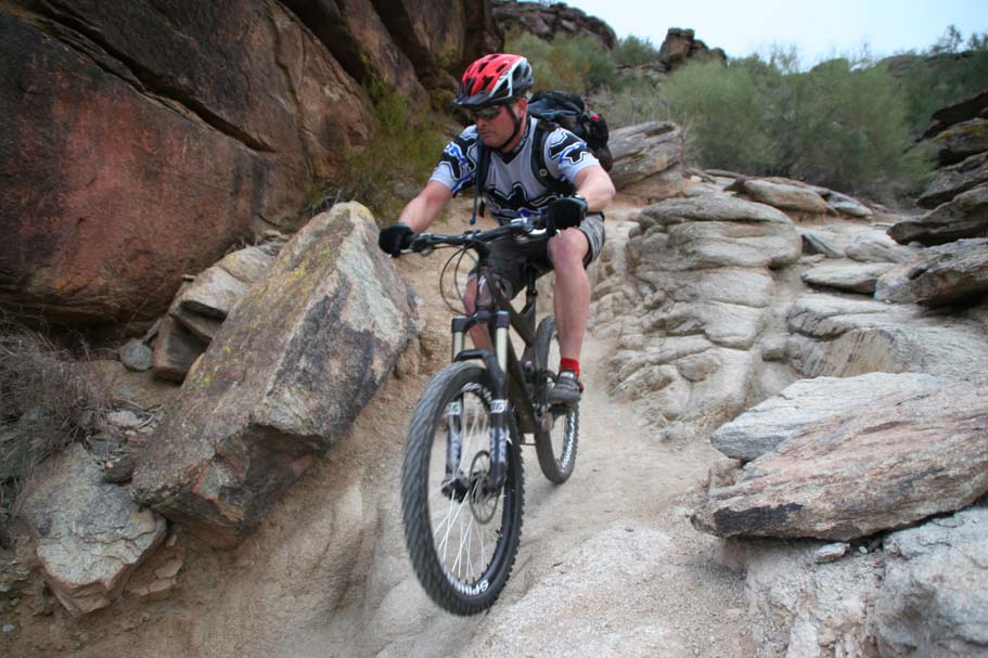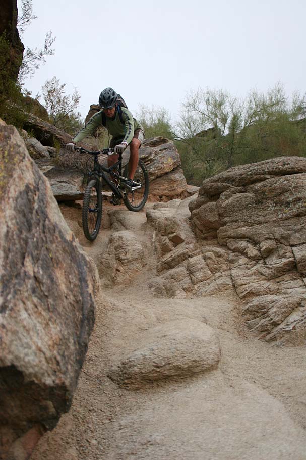 Bike Magazine recently ranked the National trail as one of America's 10 Best Trails saying "South Mountain is, simply put, home to some of the most brutal and demanding cross-country trails in the country." While we only rode a couple of the many trails on the mountain I would certainly agree it is quite technical. I would say it is an advanced riders kind of place, but a strong intermediate level rider who judiciously picked there lines could stay on their wheels for nearly all of the trail. |