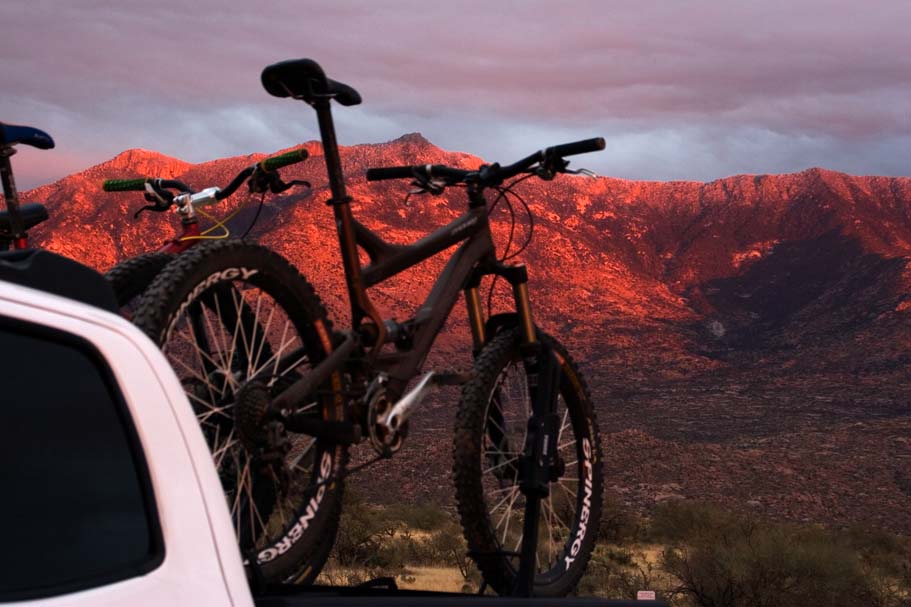 So we all woke up pretty late this morning and realized that we had a few slight flaws in "Plan C" from the day before. We seemed to have forgotten to add "Eat some dinner" to the list and some how managed to sneak "You gotta try this", and "Disturbing Late Night Karaoke in Scottsdale" onto the list. Sometime around 12:30PM we bid Troy a farewell, and started testing the speed rating of my truck tires for most of the way to Tucson. On the drive out we discussed ride options as well as available daylight while flipping through our guide book. We decided on the 50 Year Trail that is just north of Tucson on the western base of the Catalina Mountains.