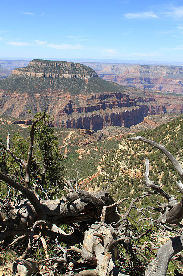 We also came across at buffalo kill that was presumably made by a mountain lion. It is amazing to think about the power of these big cats to take down a buffalo. Armed only with cameras we were certainly not the apex predator out here. There are plans to formally reintroduce the Mexican Gray Wolf back into the plateau. While officially the powers state there are no wolves here, I personally saw one in 2006 and another mountain biker saw one as well. I have seen a ton of coyotes and know this difference. I read at least one report were a group of wolves that were released in New Mexico went missing shortly after their release (tracking collars went silent). Hmmm the conspiracy theorist in me could see an unofficial reintroduction occurring on the plateau and then later claiming the missing wolves found their own way here. After checking out the Buffalo kill we continued on and soon made our way Timp Point.