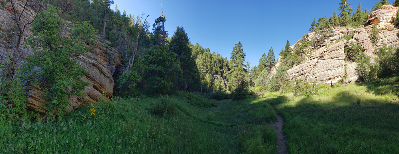 Boy this was special loop that checked off so many boxes on the list of what makes an amazing outdoor experience for a single track coniuessuer. I got up bright and early and was at the trailhead by 7:30am. The early morning started off quite cool in both tempurture and events. I had an elk cross in front of me on the drive out to the trailhead road. That was cool in that I saw an elk and cool that it did not end up on my hood. The route I did on this day was 20.8 miles with 1,200 feet of climbing. (Note: Trailfork's elevation estimate is wildly off for this route). My route/ridelog includes an out-and-black (plus down and up) to Fisher Cave, which you should consider a must do. Bring some kind of flash beyond just your cell phone for the walk back into the cave. If you don't you will most likely not see how talk the cave is when you get to the back of it. At 14.4 miles there is a trail junction on my route that has been going left. While this left was still awesome, if I was to do the route again I would go to the right to stay on the Arizona Trail proper. While this section of the AZT is rated as an intermediate trail it does have spots that "fight above its weight class".