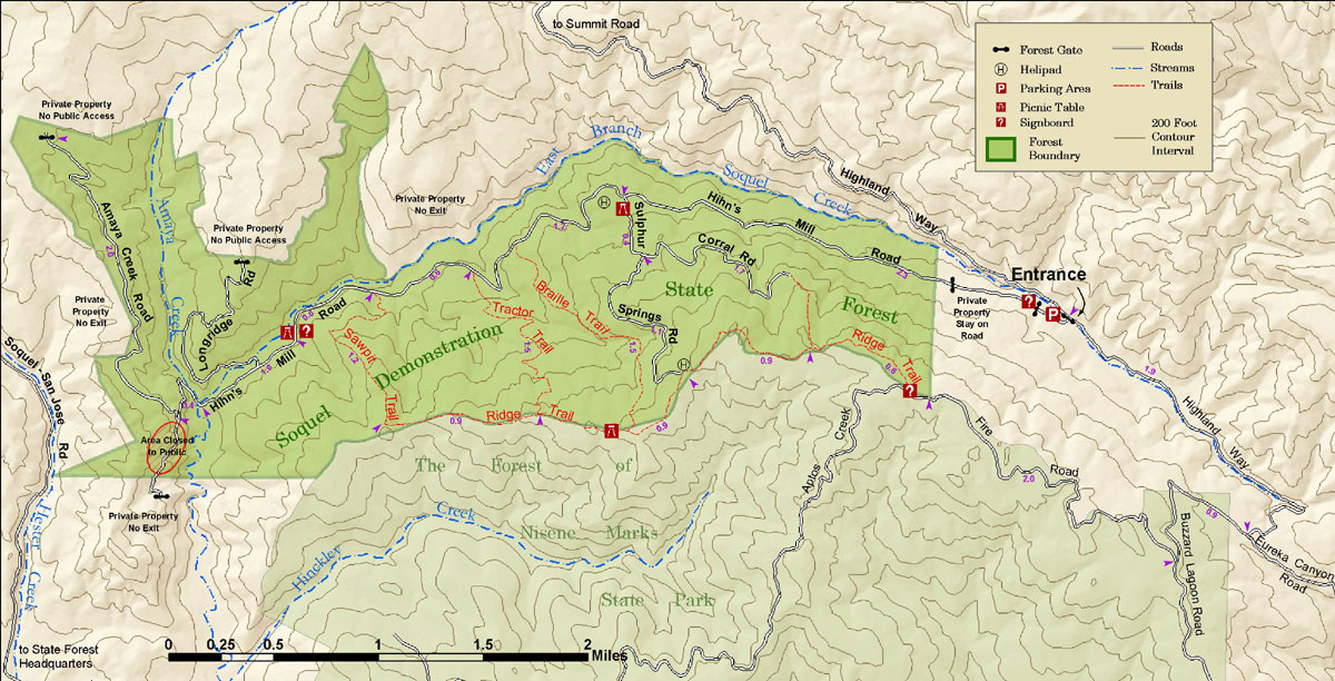 | Map and Other Resources: The Virtual Parks Organization has a okay map that is focused on the neighboring Forest of Nisene Marks but it does show a pretty good big picture of the area. |