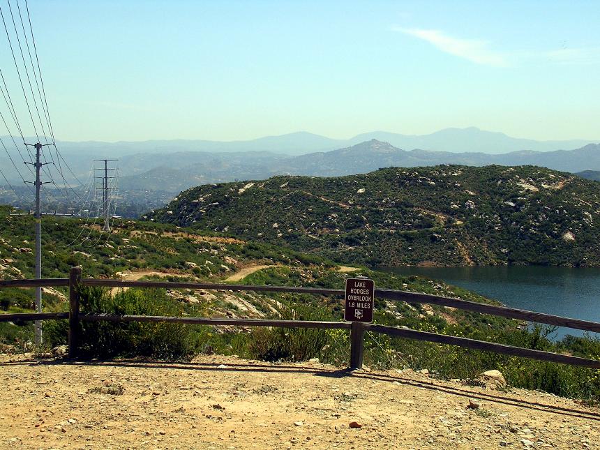 This trail was added to the system on January 1st of 2005. The trail started out as a 1.8 mile long out and back that starts off from the Escondido Overlook along a very wide fire/access road down the the eastern end of the reservoir. It was a collaboration effort with the reserve management, SDMBA and the IMBA trail crew. It started out 6-8 feet wide in most spots in order to meet county regulations for multiuse trails but it has since weathered into something more natural and more narrow. The trail does have a few technical items here and there and with some pretty steep pitches coming out of tight switchbacks as you make your way up to the south ridge. A few years later a loop trail was added beyond the Hodges Overlook which is a nice addition that offers some nice technical features as well some great views of the reservoir. This is now a quality lollipop shaped loop worth adding into your outings here.