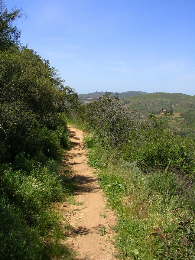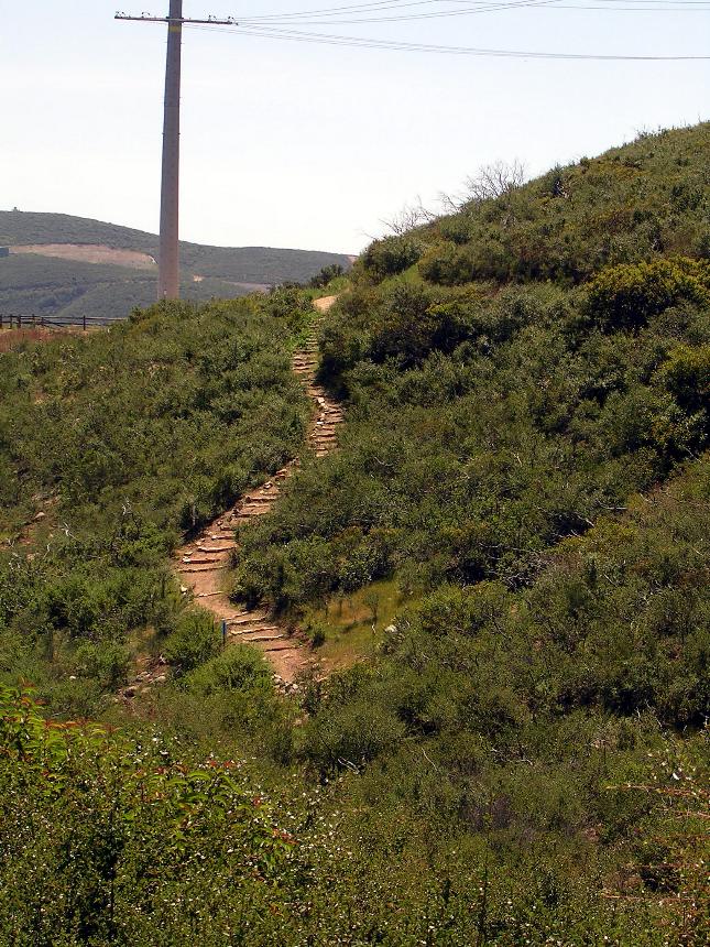 You will not see this trail on the offical Elfin Forest Reserve Map. The reason for this is that virtually all of the trail is off of thier property so they just don't show it. This trail used to be a renegade trail but it is now a full blessed trail as part of the Los Cielos Preserve that is adjanct to the Elfin Forest Reserve. I have always referred to this trail as the "Way Down Trail" as it is a good option get off the mountain top without having to deal with the typical hiker congestion of the The Way Up trail. The trail is 1 mile long with an elevation change of a little under 500 feet. Yeah its steep, but can be climbed. It is a very fun and somewhat rowdy descent.