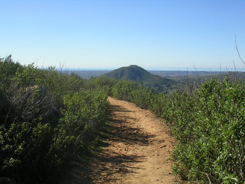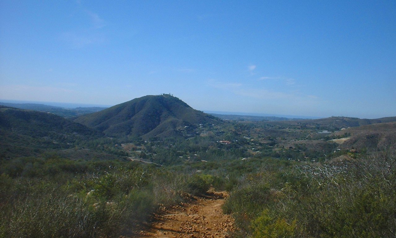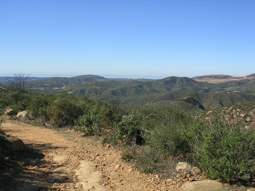 The loop trail is a lot of fun. You will most likely not notice this shortcut trail off to your right at a low spot in the trail that will take you right back up to the overlook, but don't worry about that as you are going that way anyway. The loop feeds you back onto the overlook trail heading back towards the ridge maintenance road. Retrace your way back to the large flat area via the Ridgeline Maintenance road and the Quail Trail. Continue straightish through this intersection and pickup Equine Incline trail and take the loop clockwise. There is some gruntage to be done to get up to the highpoint of this route at the junction of the Manzanita Trail. It is worth a snack break at the top to take in some views before continuing along. The descent down from here is a good chunk of technical fun. After the low spot you will have a short bit of steepish climbing to down before the trail turns towards the east and mellows out. At this point be on the lookout for the Los Ceilos Preserve trail heading off to your left. You should be right at the 10-mile mark at the junction. Take this trail and a nice bit of descending over the next mile. The trail will bring you out onto the Escondido Sewer easement dirt road. Hang a left and take it out to Via Ambiente. Hang a right and you should see the bridge, gate and parking lot you started from ahead.