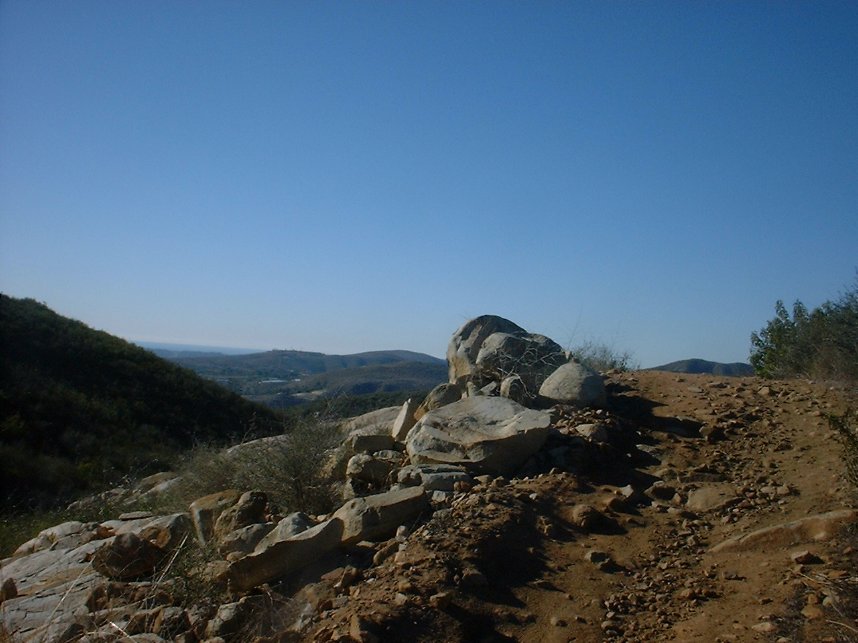 I have grouped these two trails together as I think they just go together. These trail can be ridden in either direction and on thier own, but prefer doing the from the top of the Equine Incline Loop. From the shelter/bench at the top of the Enquine Incline Loop Trail (Where on a clear day you can see the San Jacinto and Cuyamaca Mountains as well as downtown San Diego, Point Loma, La Jolla, and Coronado Islands off the coast of Mexico) you pick up the Manzanita trail in the south west corner of the overlook area. The Manzanita Trail continues to the south where it offers up some views of the reservoir, but keep your eyes on the trail as you will have some large rocks as well as loose corners to contend with. In just 3/10ths of a mile the trail dumps out onto a fireroad will you will bear left and bomb down the hill.