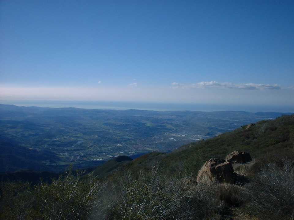 However all of the trials in the park were closed due to wet and muddy conditions. So I went to Plan B that had me following Live Oak Canyon road out to Santiago Canyon Road at Cook’s Corner. It was nice and warm down at this lower elevation of 922 feet so I shed off the layers and got back to shorts and a short sleeve jersey. After another quick bite to eat I was off. I was pretty tired at this point and the climb up Live Oak Canyon rode was quite taxing. About 3/4ths of a mile from Cook’s Corner you peak out and then a short blaze fest ensues. The bike computer had my max speed in this section at 43.5mph. It was very short lived as I hung a right at Cook’s Corner onto Santiago Canyon road. It was a mild climb at this point, but I was noticeable slower than I normally am on this section. After about 1.3 miles I hung a right onto Mojeska Grade road. This is a steep paved road that is always taxing but it was down right brutal at this stage of the ride. It was all I could do to get up this hill in the granny gear.My computer registered 33.4 miles when I finally peaked out at the top the hill (and the trailhead for the Santiago Truck Trail).From here it was another blaze fest down to Mojeska Canyon road.After that there was a short ride up a gentle rise back to Harding Truck trail.My bike computer ticked over 36 miles just as I stopped the bike. This was by far my longest solo ride ever and I felt quite satisfied with completing it. One of my goals for 2002 was to ride the Main Divide Truck trail from the top of Black Star Canyon to the top of the San Juan Trail (not all at once). This was the final section I need to do to meet that goal and I even had eight days to spare.