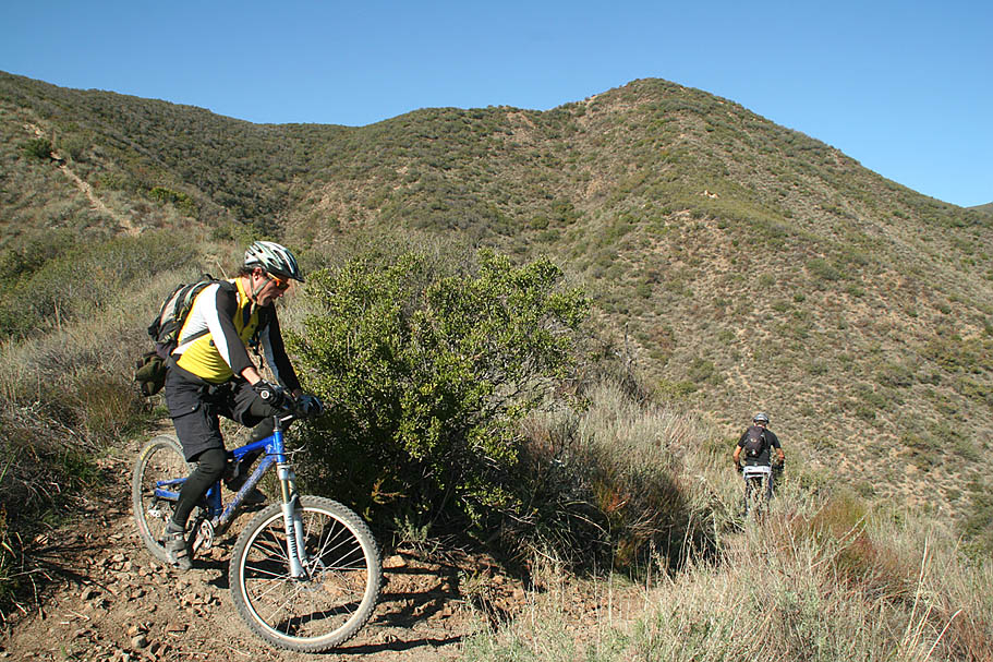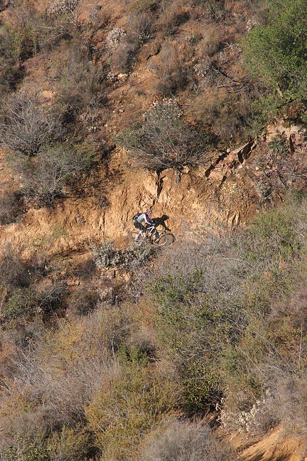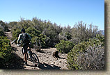 Now the cycle of downhill fun and uphill brutallity starts. For those that have ridden the Bell Ridge trail before, I found the Los Pinos trail to be much more enjoyable. The downhill portions are better in the way that you can carry more speed and enjoy yourself much more than Bell Ridge. Most of the downs on Bell Ridge were so steep that you spent most of your time riding the razors edge of slow speed controlled braking. |