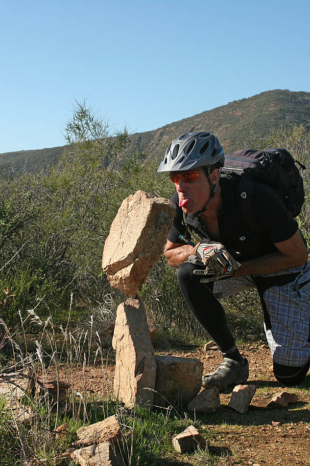 Now downhill does not me a cake walk by a long shot. We did have some pretty mellow and flowing sections but there were also some more white knuckle descent sections to deal with. About a mile or so from the bottom we came across some balanced rocks that a trail user showed some real skill in getting those things balanced. We would notice about six more of these along the rest of the route .