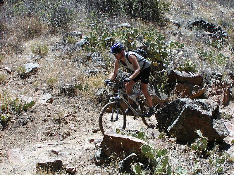 Hazards: Treacherously technical trail with steep drop offs just off the trail in spots. Noble Canyon is not a place to bring a beginner or someone just breaking into the intermediate catergory. For San Diego locals, if Miner's Ridge Loop at Black Mountain gives you fits, you will most likely not be a happy camper on Noble Canyon. DO NOT underestimate the late spring to early fall heat or overestimate how long your hydration is going to last! The lower portions of the trail can get be much hotter than the general surrounding area with little shelter from the sun .