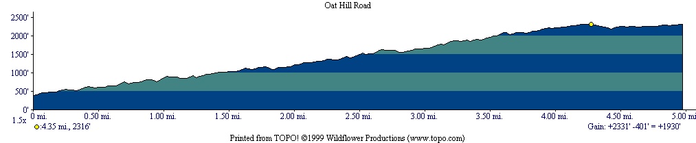 Here is the Oat Hill Road map and elevation profile. The profile only includes the way up.