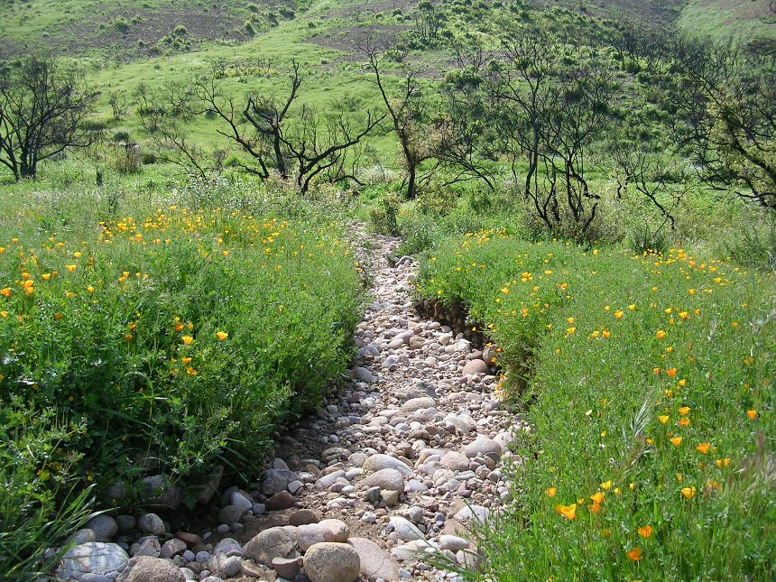 The huge amounts of rain that Southern California has received during the winter of 2004 and 2005 has helped to speed up the rebirth of this place. These pictures do a very poor job of capturing the pure beauty of this place in this magically time of the year.