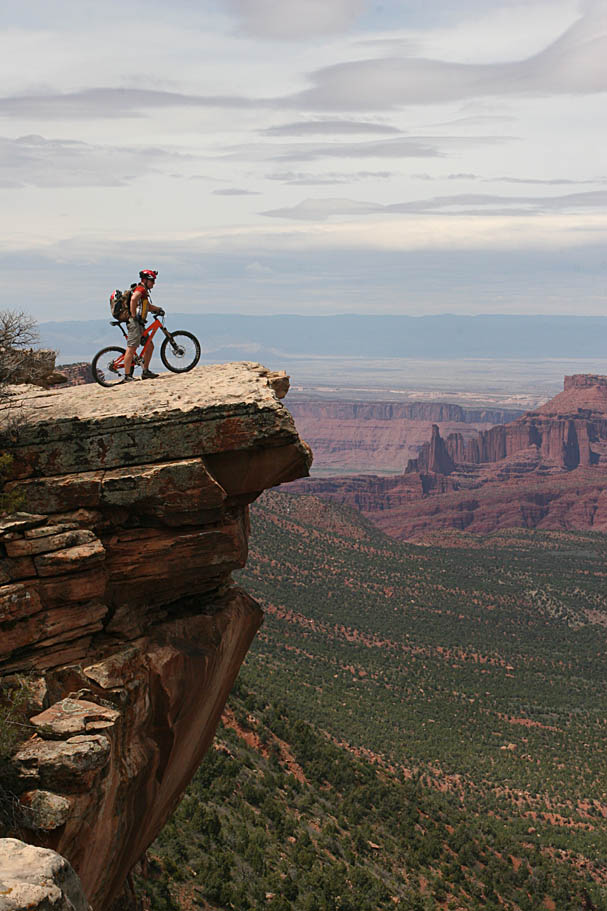 The scenery from along the rim just kept getting better as Fisher Towers across the valley came into view. The singletrack is only 3.4 miles long but it certainly seems longer. You will most certainly be stopping a plenty to enjoy the eye-candy. The singletrack ends when it pops back out onto the doubletrack that continues on out to the very end of the mesa.