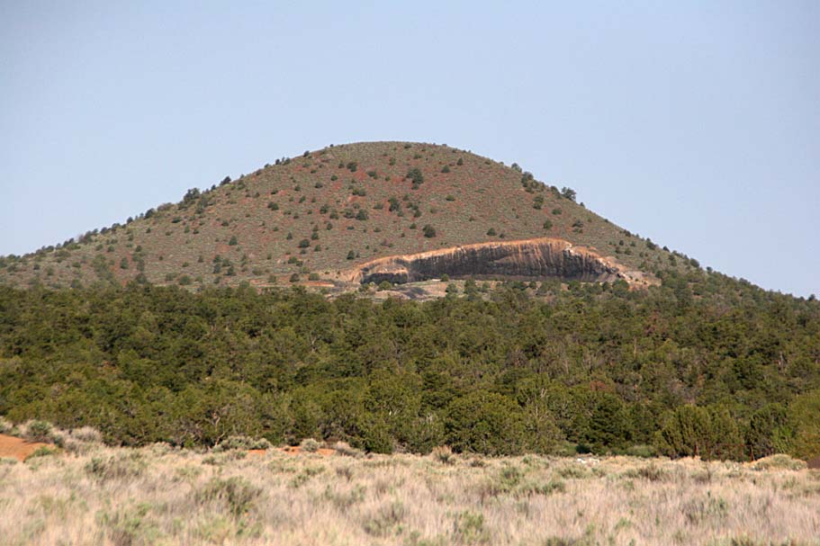 Directions: (Can be a navigational challenge and some navigation applications get it wrong) From St George, Utah, head north on Interstate 15. Exit on highway 9 and take it east into Hurricane. Turn right onto highway 59. Zero/check your odometer at this point. At the next intersection highway 59 turns left and heads uphill and out of town. About 5-6 miles later you will pass by "The Point" of Gooseberry Mesa on your left and you will see Little Creek Mesa off to your right. Keep on driving. After about 10 miles from town you will go by a gas station on the left. A few miles later be on the lookout for Little Creek Mesa Road on your right at 14.6 miles. (For you Gooseberry veterans, if you pass the dirt road on your left that turns back about 120 degrees that heads out to Gooseberry Mesa you have gone too far. ) Now ZERO your odometer again as you make the right hand turn onto Little Creek Mesa Road. I'm going to reference this spot for the rest of the way. Also take not of the large knoll to the south with the cinder pit. This is your best visual reference in the area (pictured above right). The road will be going to the left and behind this knoll. (Note: Unless I say otherwise these turns are also on the mainly traveled road.) At 0.3 miles the road turns left and there is a 400W sign. At 1.2 mile the road turns right. At 2.2 miles the road turns right. At 3.2 miles keep left. At 3.5 miles you go over cattle guard. At 3.6 miles keep left. At 6.7 miles you will come to a 4 way intersection in a slight low spot in a fairly open area. Make a right hand turn off of the main road. At 7.6 miles a road merges in from the right, stay on the road you are on by bearing to the left. At 8.5 miles you will cross another cattle guard. At 8.9 miles you will reach a slickrock area where you will park off to the left. It will be blatantly obvious if you go to far as the road will suddenly become a high clearance type road.