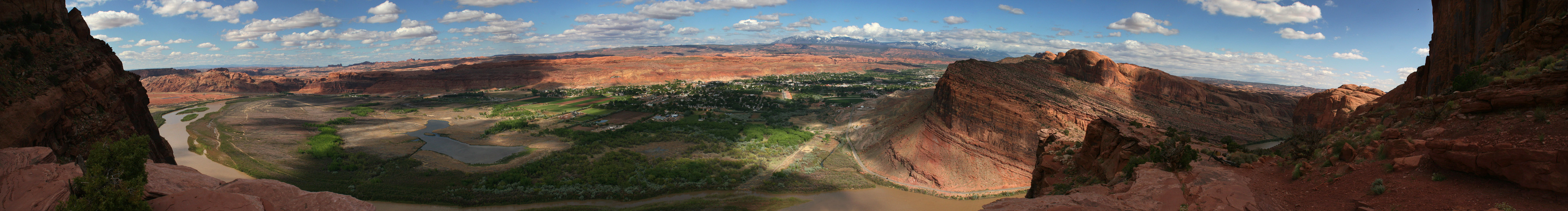 The views of the Moab Valley below were simply impressive. Highways 128, 191, Potash Road and Kane Creek Roads were all just thin little lines from this vantage point. You could also see were the seepage from the tailings pile from the old Atlas Uranium Mine is killing the trees between the pile and the Colorado River.